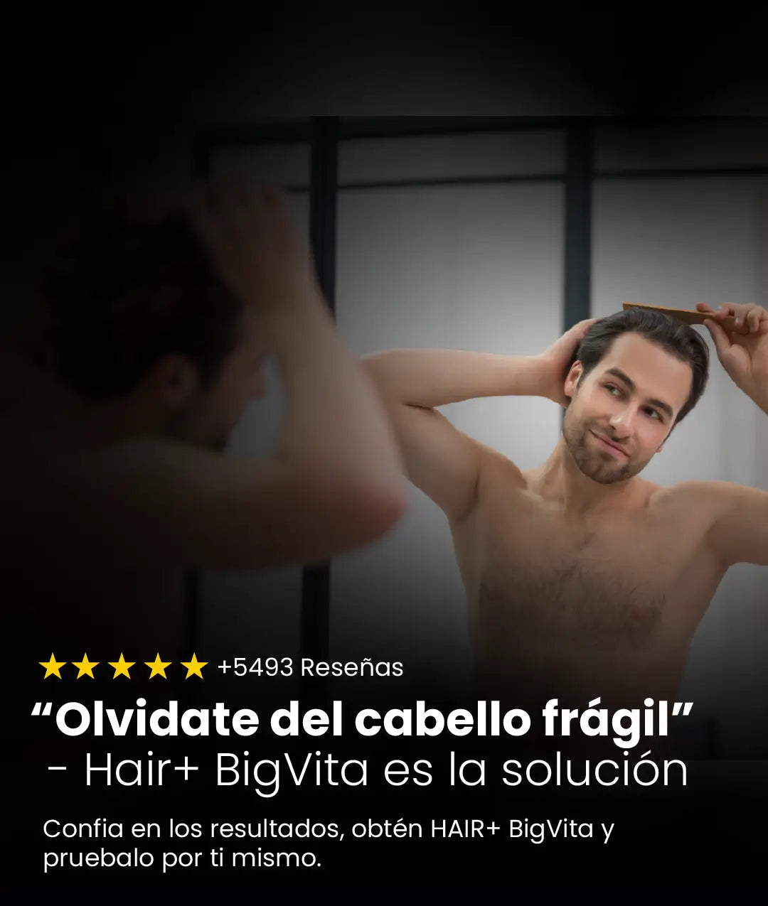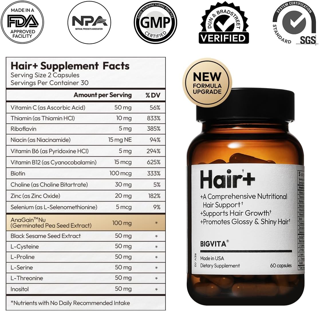 Usa BIGVITA Hair+ con AnaGain™, un ingrediente suizo respaldado por estudios, que reactiva el folículo desde adentro — justo donde empieza la caída.